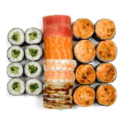 Каракатица, филадельфия с лососем, запеченная сырная креветка, темпура тунец
