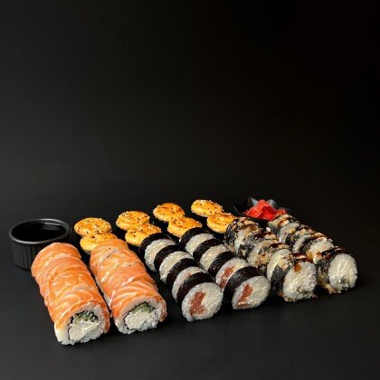 Филадельфия с креветкой, сырная креветка, запеченный креветка тамаго, темпура снежный краб