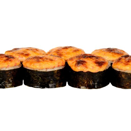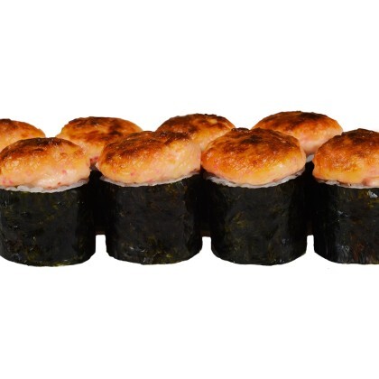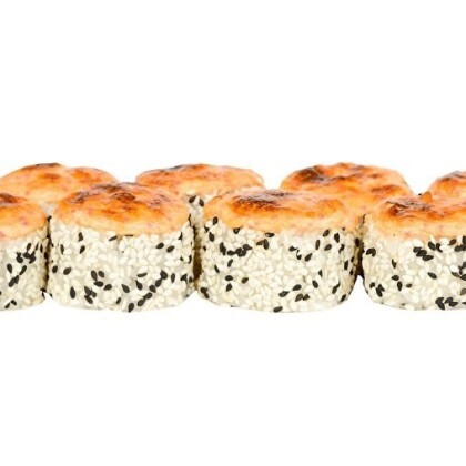 Рис, нори, креветка, огурец, сыр сливочный, унаги соус, спайси соус, кунжут